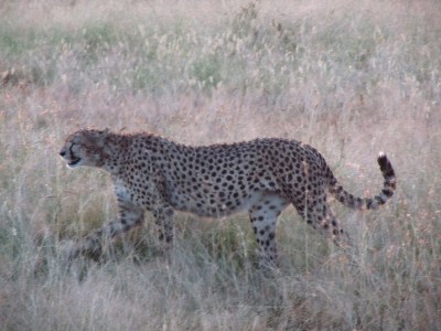 In the midst of Serengeti’s lush grasses there are also areas with trees. In these areas spotting an animal is more likely and this is also where we encountered three cheetahs: mother with its two cubs. As the cheetahs were finishing up their dinner, a large hyena appeared and was threatening one of the cubs. This did not go well with the mother cheetah however….